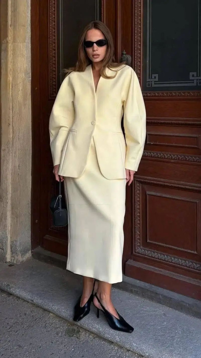 曾经是职场精英的标配,如今“短一点”的西装反而成为高智感女性的首选。它摆脱了传统西装的拘谨,带来轻盈与时髦并存的当代通勤风格。