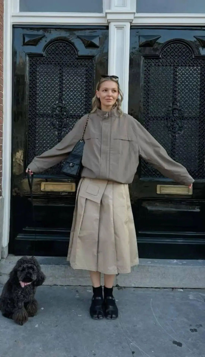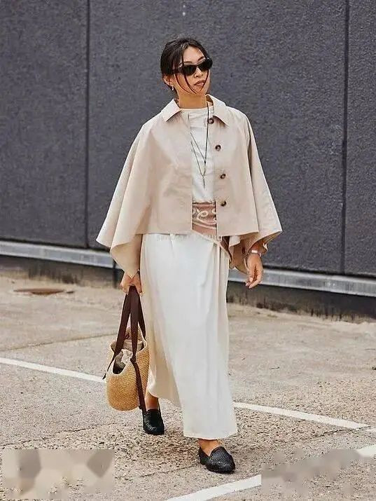 斗篷式短风衣也是近年热门之选,频繁现身时尚街拍。它兼具简洁与雅韵,无论是搭配灯笼裤还是连衣裙,都能呈现耳目一新的视觉效果,堪称本季最值得投资的单品之一。