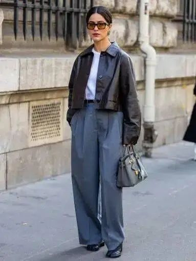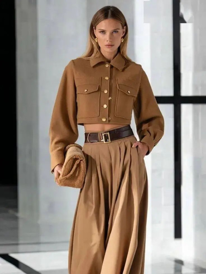 配裤装则更强调利落与帅气。短款设计为下装留下充分的展示空间,无论是阔腿裤、工装裤还是微喇款式,皆可大胆尝试,穿出低调却强大的气场。