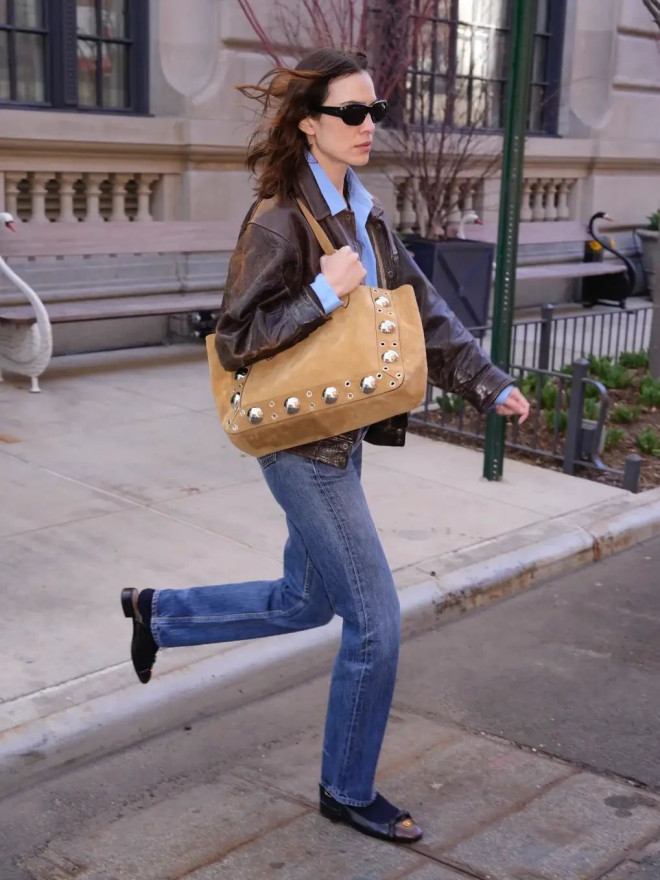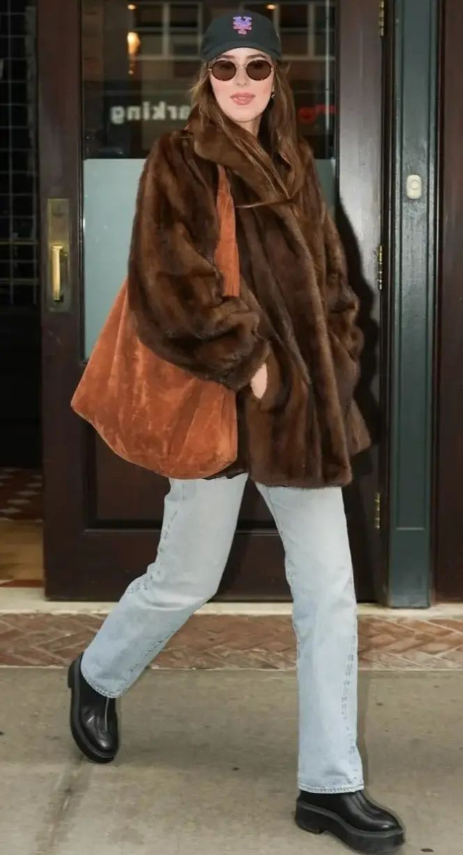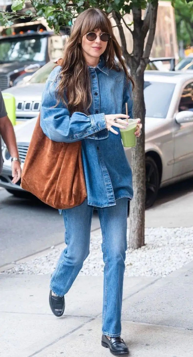 Dakota Johnson就超爱Bindle麂皮棕,容量大又很潇洒,怎么搭都毫不费力。