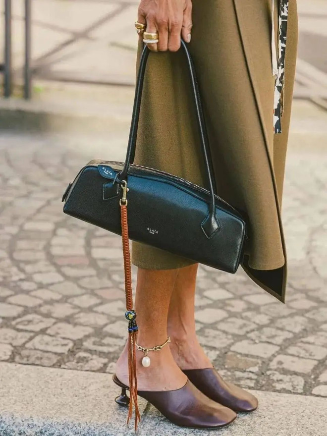 ALAIA的腊肠犬法棍今年秋冬俘获了一众时髦女士的心,纤长轮廓轻盈又百搭,可肩背可手拎,松弛演绎现代感风格美学。