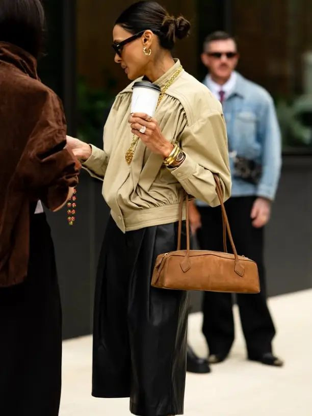 今年的麂皮元素太火了!各大时装周街拍都能看到各种麂皮外套、麂皮半裙、麂皮包包等搭配。不得不说,秋冬的氛围感拿捏,还得是一只麂皮包包。