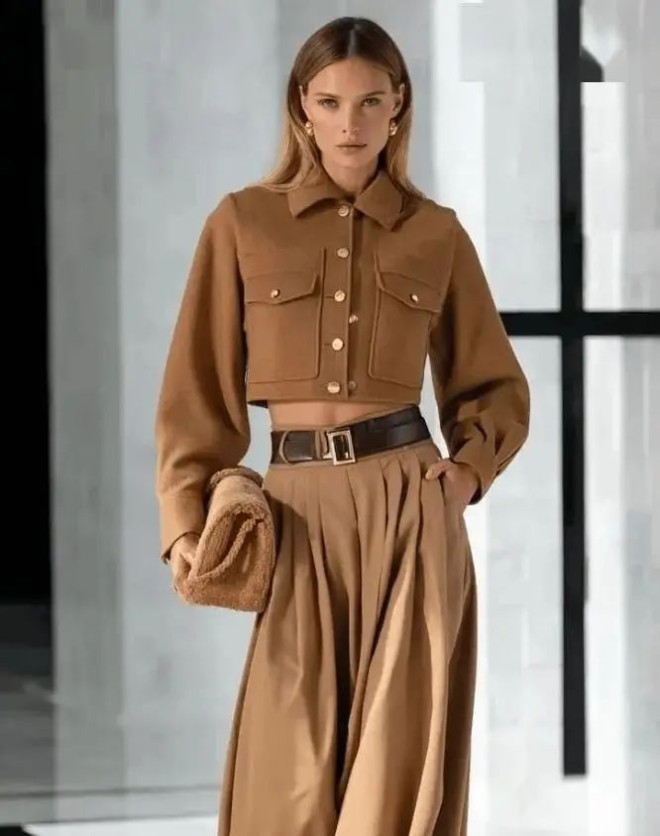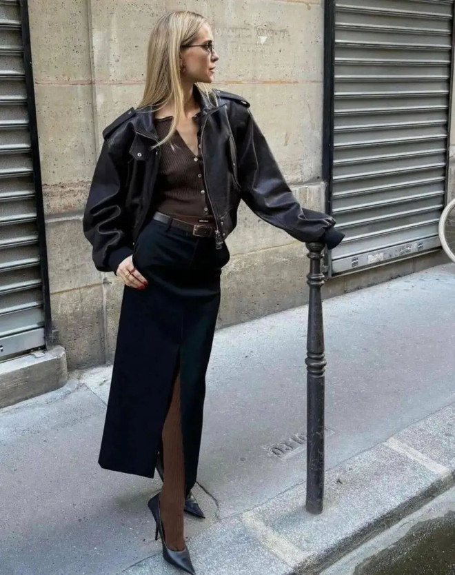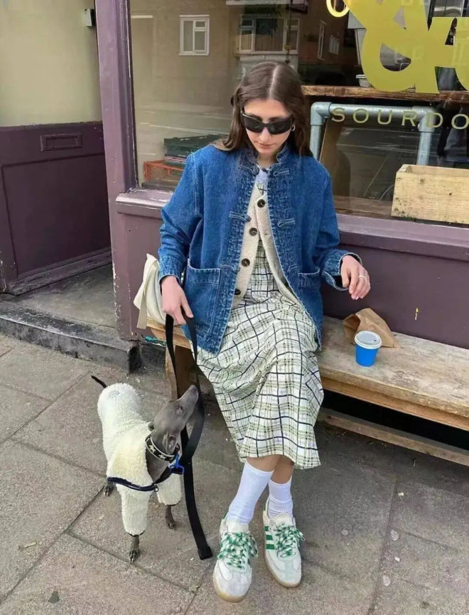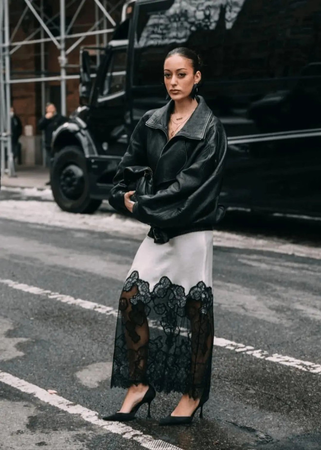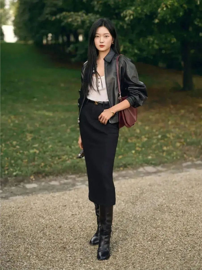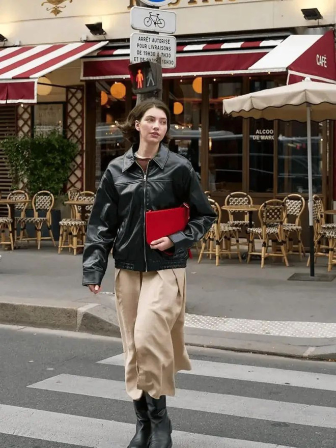 既能让人在裙摆的温柔里触到坚韧,也能在夹克的锋芒中感受到温情,尤其适合深秋,既有对抗凉意的实用性,又藏着不刻意的穿搭巧思。