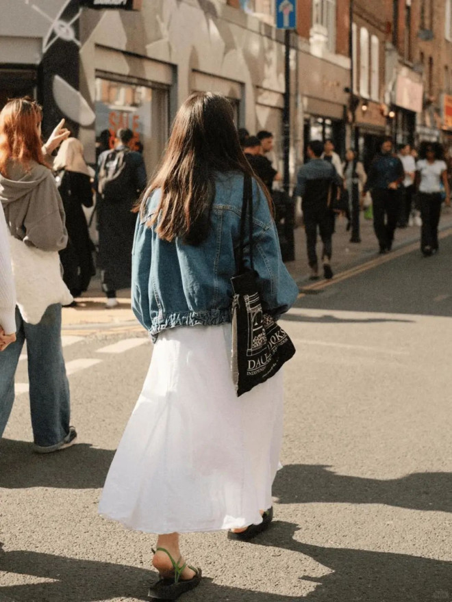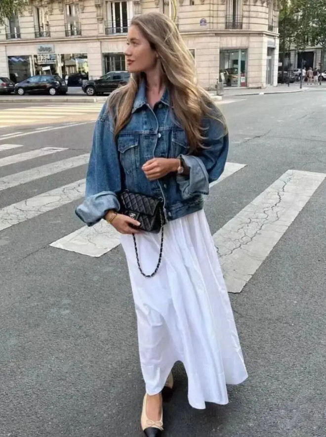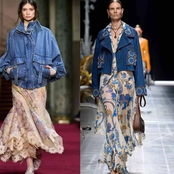 牛仔外套堪称百搭之王,配A字短裙元气满满,搭配茶歇裙慵懒随性,与长直筒裙共穿则更显从容。蓝牛仔+白长裙,清新帅气;内搭碎花连衣裙,用牛仔的粗砺感平衡花朵的甜度,层次分明又不腻味。