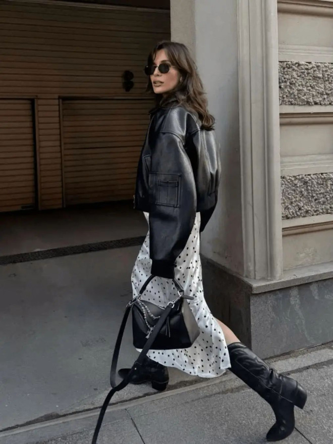 机车夹克 × 柔美裙装