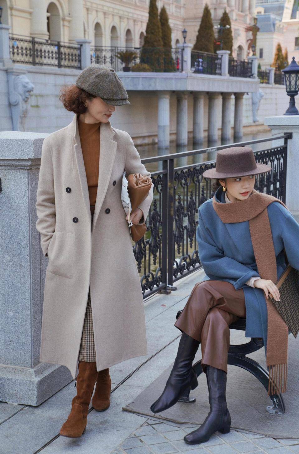 大家有没有发现,同样是一套衣服,是搭配细节上有点区别,瞬间气质就不同,比如下面这套没有把内搭的针织衣服衣角塞进裙子里面,但是加上了一条棕色的腰带,也是能很好的提升腰线,还能达到点缀的效果,包括帽子也不同,搭配出来的气质完全不一样。