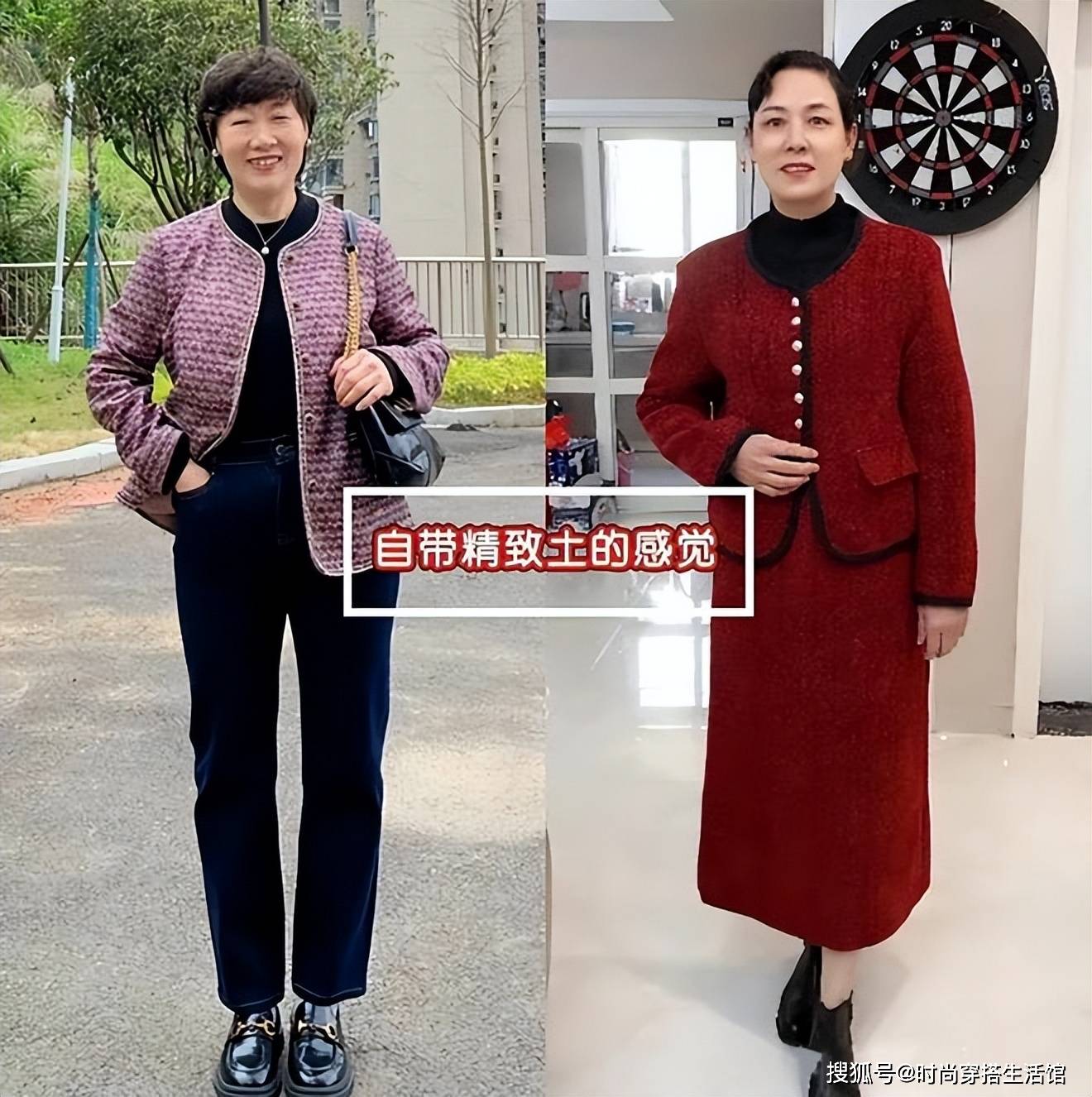 分析其中的原因,无非就是中年女人穿的小香风外套材质太廉价了,做工也很粗糙,走线差,穿在身上一点质感都没有,再加上有的大妈穿的小香风外套结合了花里胡哨的花边或者蕾丝元素,有一种廉价和浮夸的感觉,和高级感背道而驰。