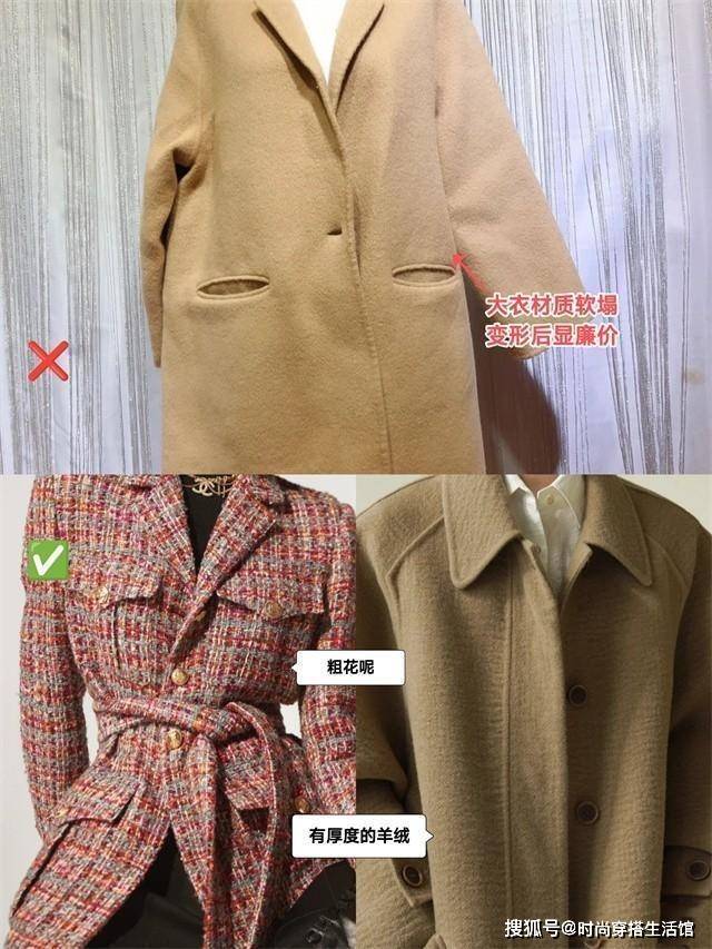 市面上有不少彩色大衣,模特穿在身上显白又吸睛,但这些大衣真的不太适合普通人,除非你的身材骨感且皮肤白皙没瑕疵,否则穿上这些自带膨胀感的彩色大衣,瞬间就会胖一圈。 尤其是玫红色、橘色之类的暖色调大衣,颜色太亮很容易产生艳俗感,即便价格很贵气,穿起来也会透露出一种精致土的感觉。