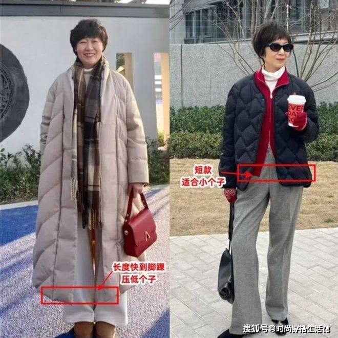 最后要避开的就是超长外套,因为到秋冬季节保暖性是大家在选购服装时会重点关注的一点,但是不要认为衣服越长越厚实保暖性越好就意味着越值得入手。 这种长度在脚踝附近的宽松长外套是非常不推荐大家去穿的,因为太长,甚至把脚背都遮盖住,这样的长款外套直接压低你的个子,而且会显得比例非常差,对于身高本身就不高挑的中年女人而言更是需要首先避雷的。
