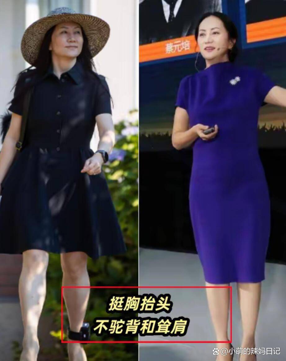 孟晚舟的裙装造型,之所以美得如此突出,其实跟她的仪态有着直接的关系,无论在哪种场合,孟晚舟都会时刻保持抬头挺胸、肩背舒展挺拔的姿态。