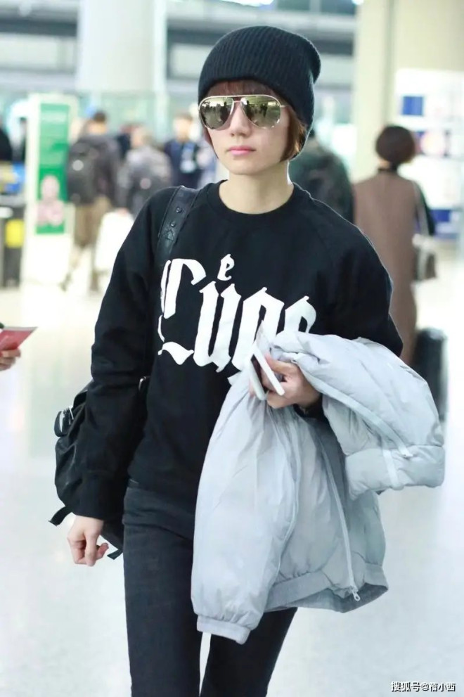秋冬季节,卫衣也是衣橱里的万能搭子,单穿的时候自带休闲感,袁泉选择了黑色印花卫衣,胸前的白色字母打破了沉闷,看起来时髦还简约。
