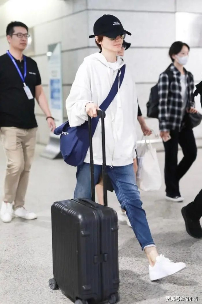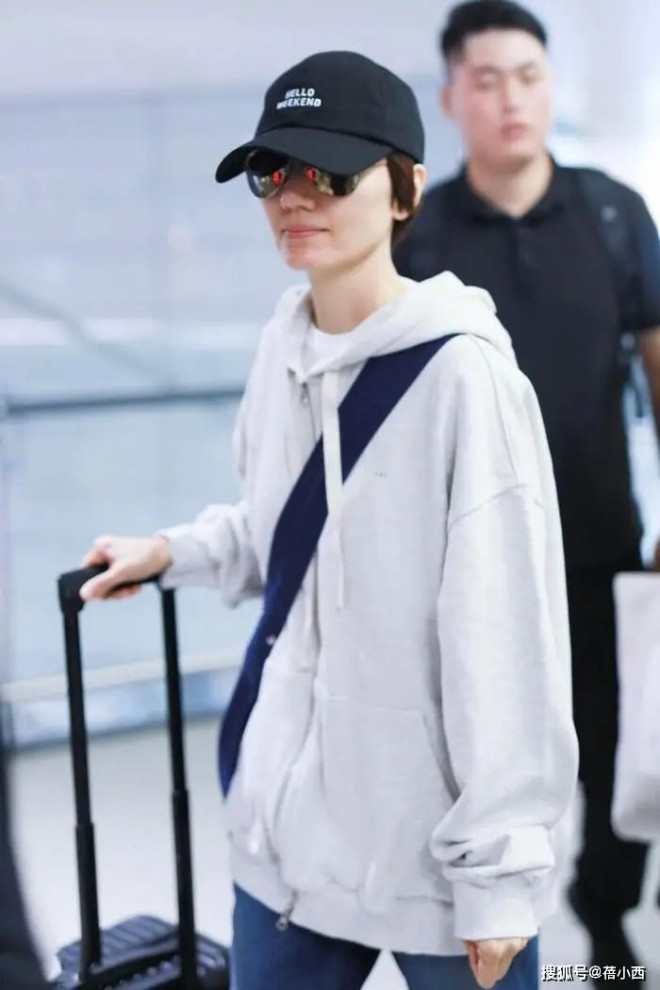 袁泉特别偏爱卫衣搭配,这一身造型中,她直接选了oversize款的白色卫衣,看着松松垮垮的,但她把袖子往上挽了挽,露出一小截手腕,瞬间就把卫衣的臃肿感给救回来了;连帽衫的拉链只拉到胸口,露出内搭的领口边儿,细节感一下就上来了,一点都不单调。