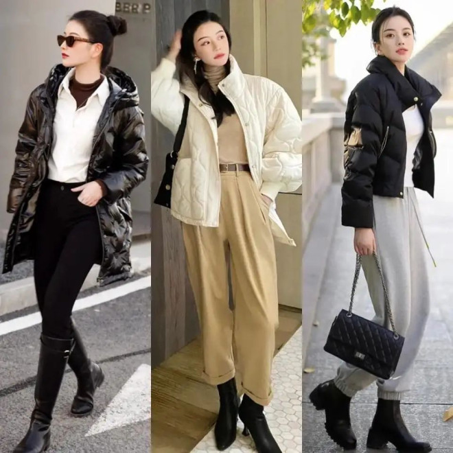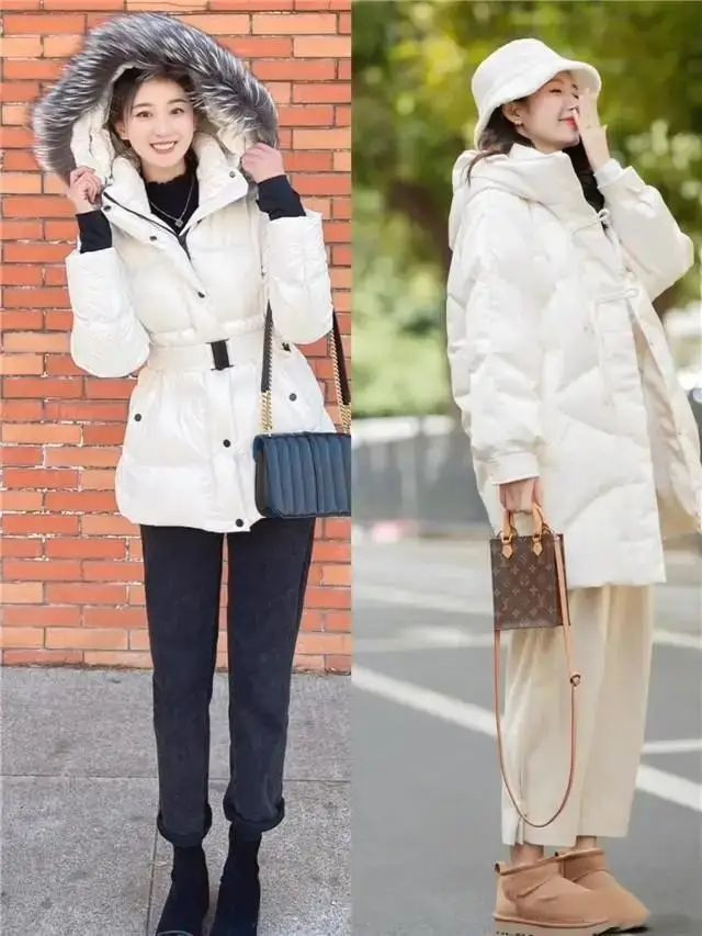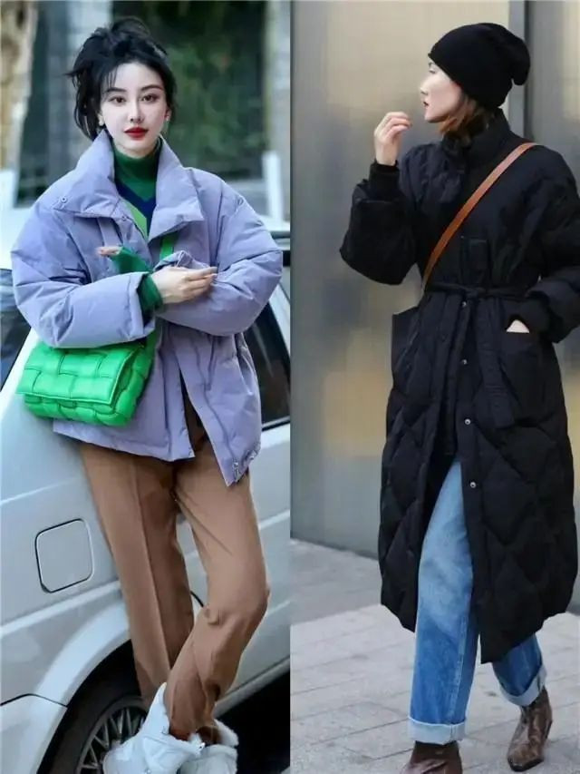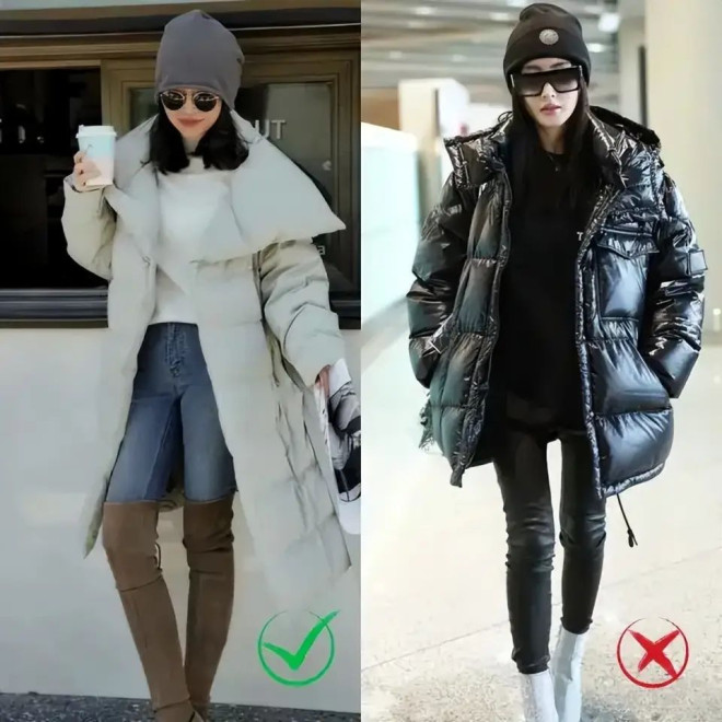 不过不管选择什么样的穿搭,上衣的羽绒服千万不能过于蓬松,要不然的话,上身的效果会显胖,羽绒服的大小要适中,根据自己的身高比例,身材比例来选择。