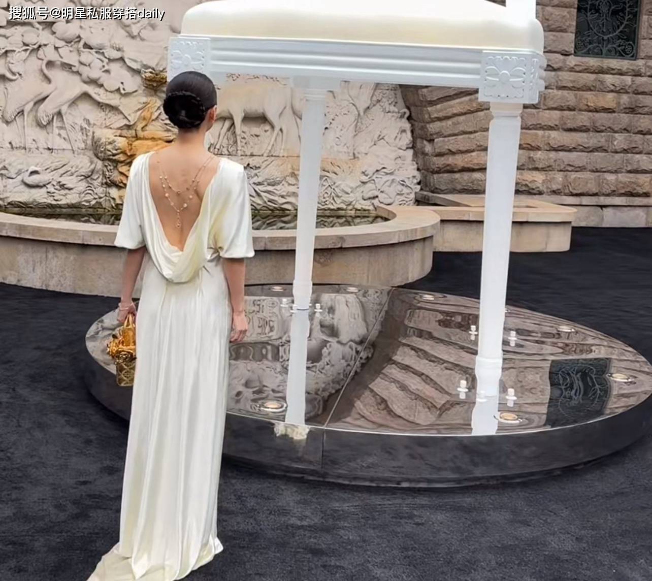 王子文的身高虽只有162厘米(公开资料显示),但她的穿搭智慧总能让小个子散发强大气场。这次的长裙选择高腰线和垂坠下摆,巧妙拉长身形,搭配露背设计更显身材比例优越。
