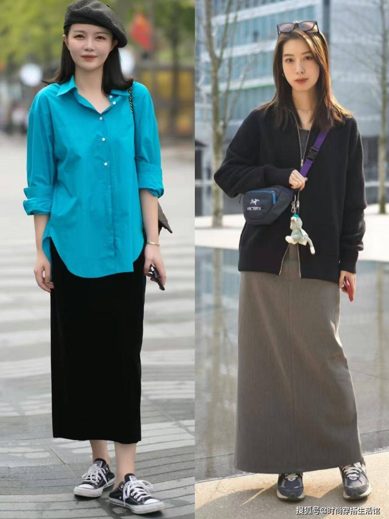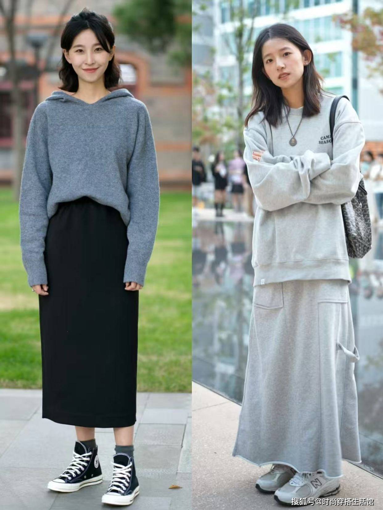 运动鞋+半身裙的穿着方式,展现了一半优雅、一半随性的魅力,大方又不呆板。高腰的半身裙、即便是简约大气的款式,配上运动鞋也会变得温和恬静起来。