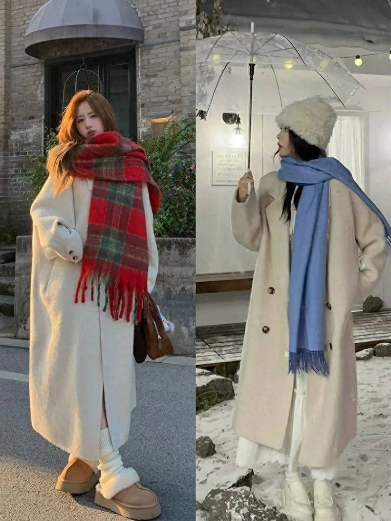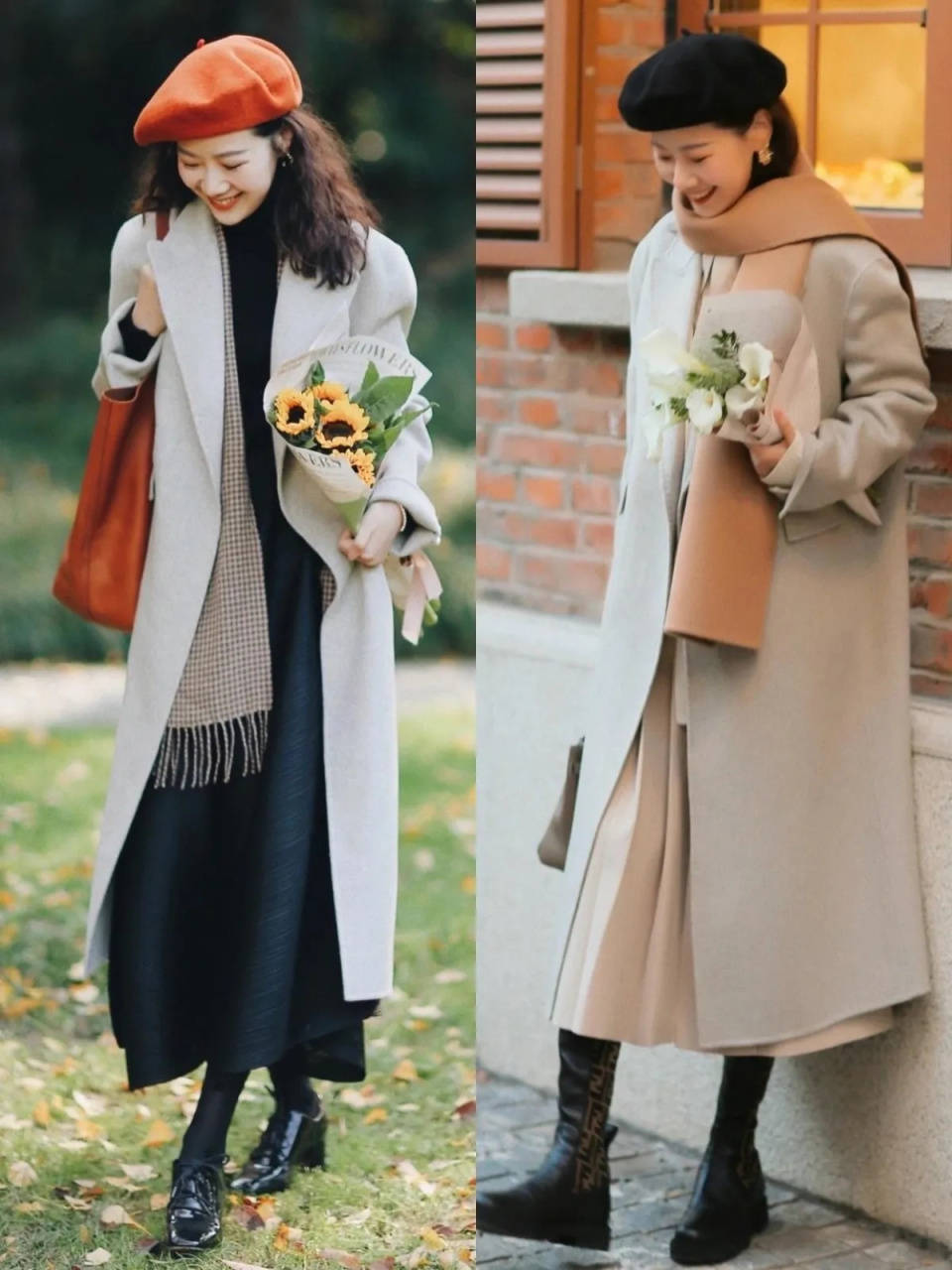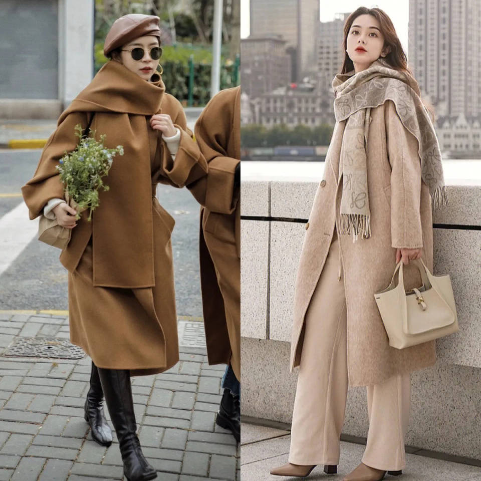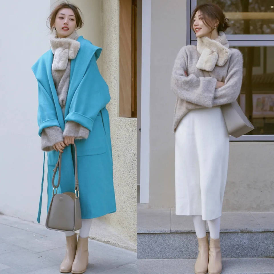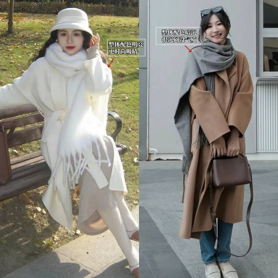 冬季少不了的衣服就是“大衣外套”,上身效果确实暖和,还很拉风,像博主一样在用裙子来搭配,优雅得体,但是少了点氛围感,所以,在用围巾来点缀一下,瞬间造型就精致时尚多了。