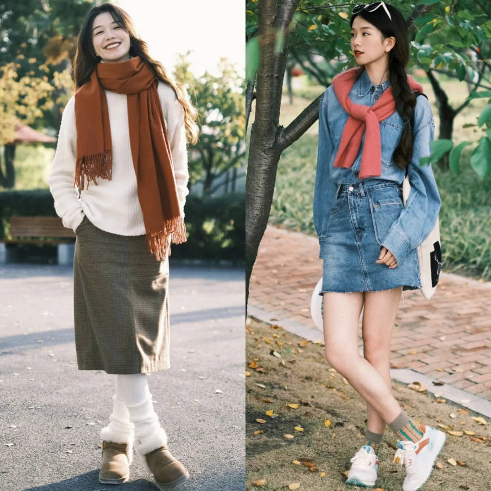 小小围巾轻松拿捏!我想说的是“no”,真的没那么简单,比肤色鲜艳太多的红书围巾,戴在脖子上就很容易显黑。