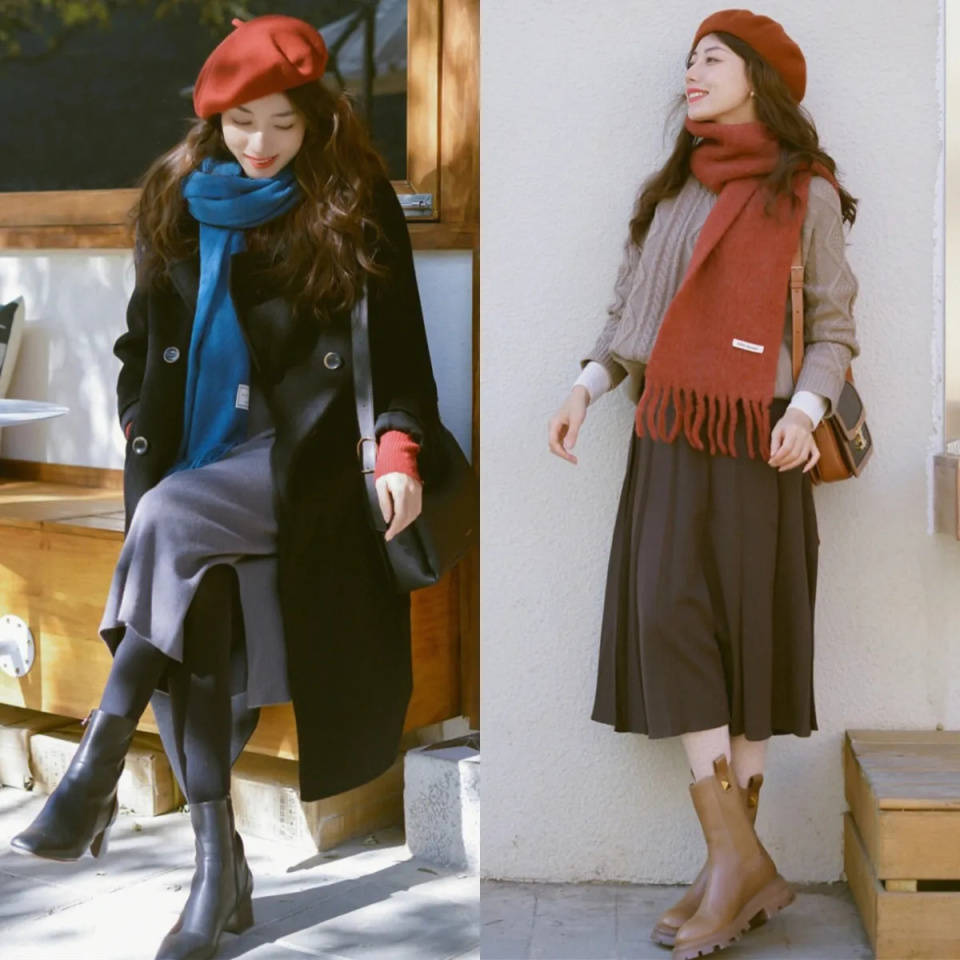同时也推荐大家选择雾霾蓝的围巾,这个色调戴在脖子上之后让你变得更加清新甜美。