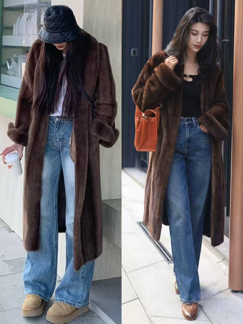 正常来说,选择大衣外套来穿搭就是为了能让自己的造型变得又飒又美,这时候不要去选择短款的外套了,直接选长度盖过膝盖超过三至五厘米最佳。