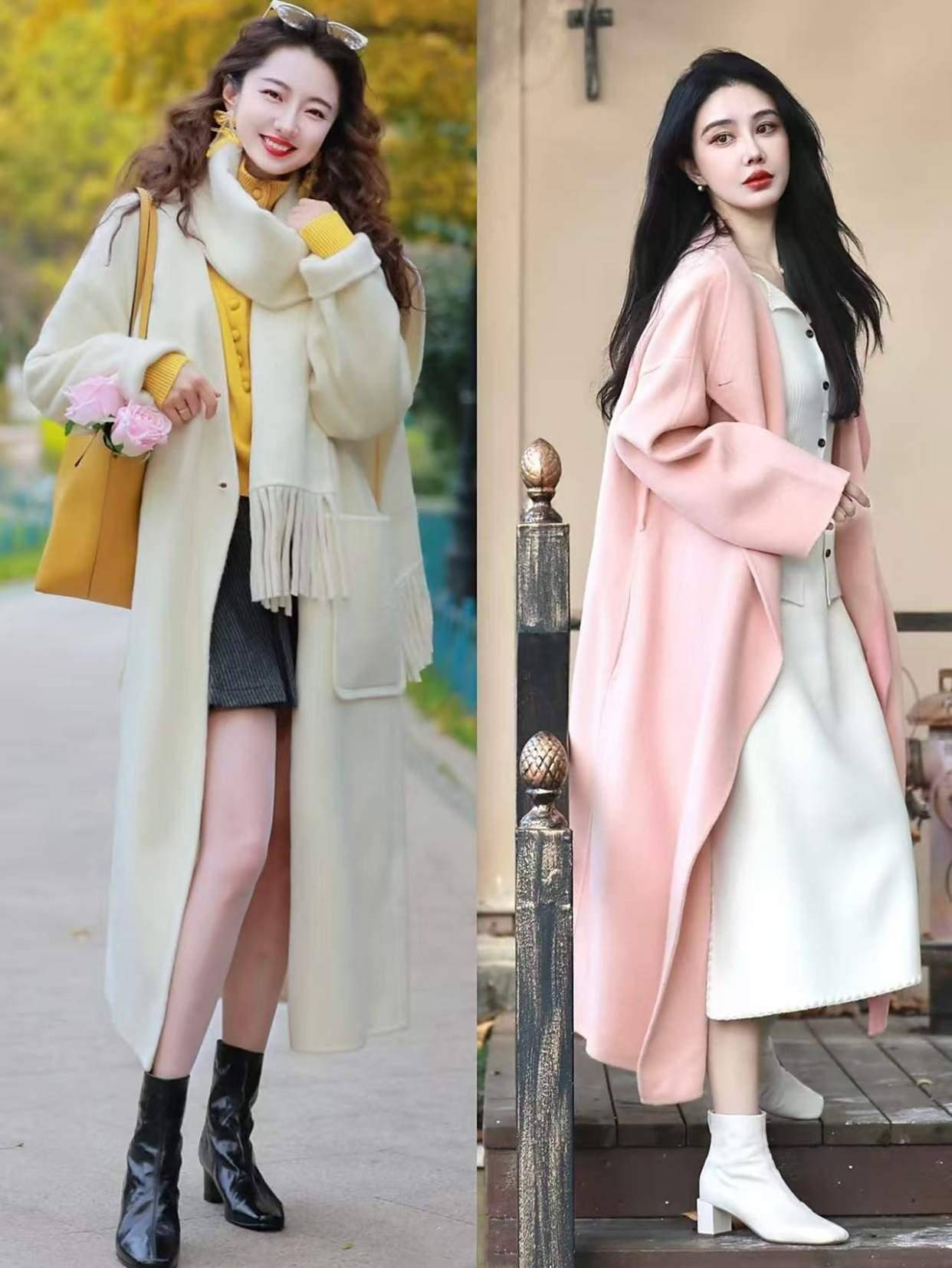 当然,如果有胯宽腿粗或者是梨形身材,这时候咱们可以直接选择一件粉色大衣搭配上白色的半身裙,脚上穿了一双白色的皮质短靴,这样的穿搭造型会更加的优雅,同时粉色的大衣外套上身效果很修饰,肤色能够使得穿搭者显白显嫩。