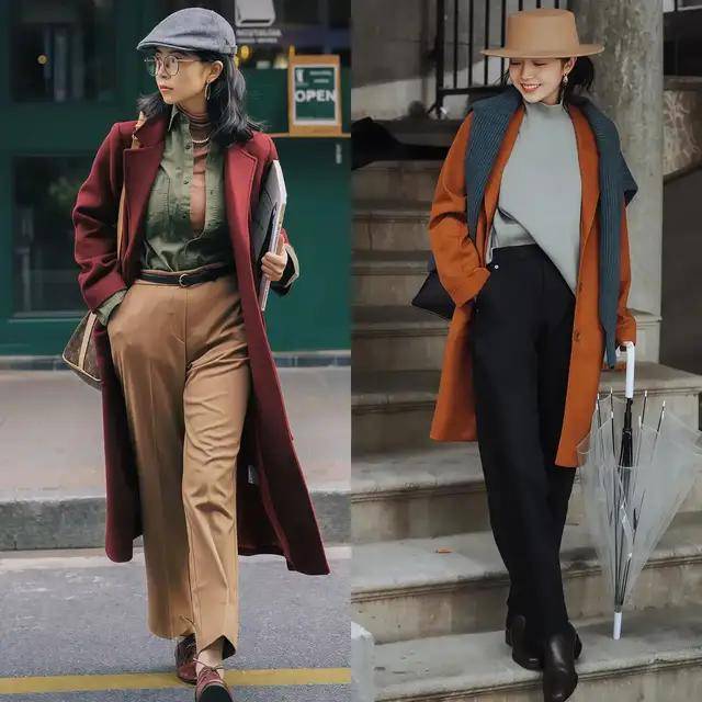 想要自己的穿搭比较有女人味,这个时候推荐你选择裙子来和大衣外套搭配,不过选择裙子的版型也不能选包臀裙,紧身的裙子,选伞状款式的半身裙,或者是a字半身裙,直筒半身裙,这三种裙子最适合咱们普通大众,穿在身上也会更得体。