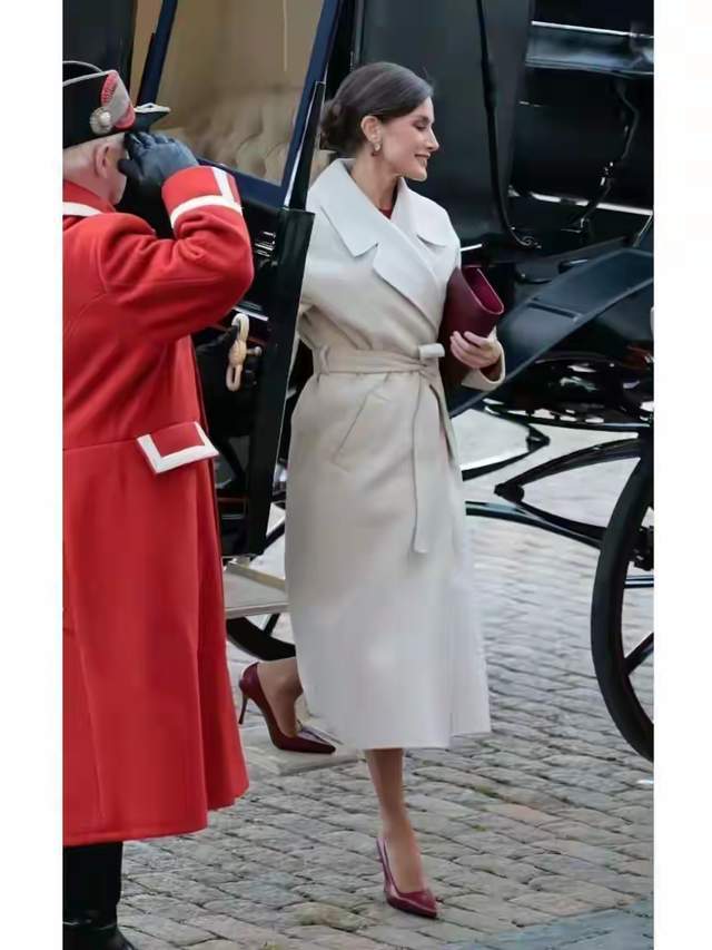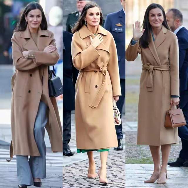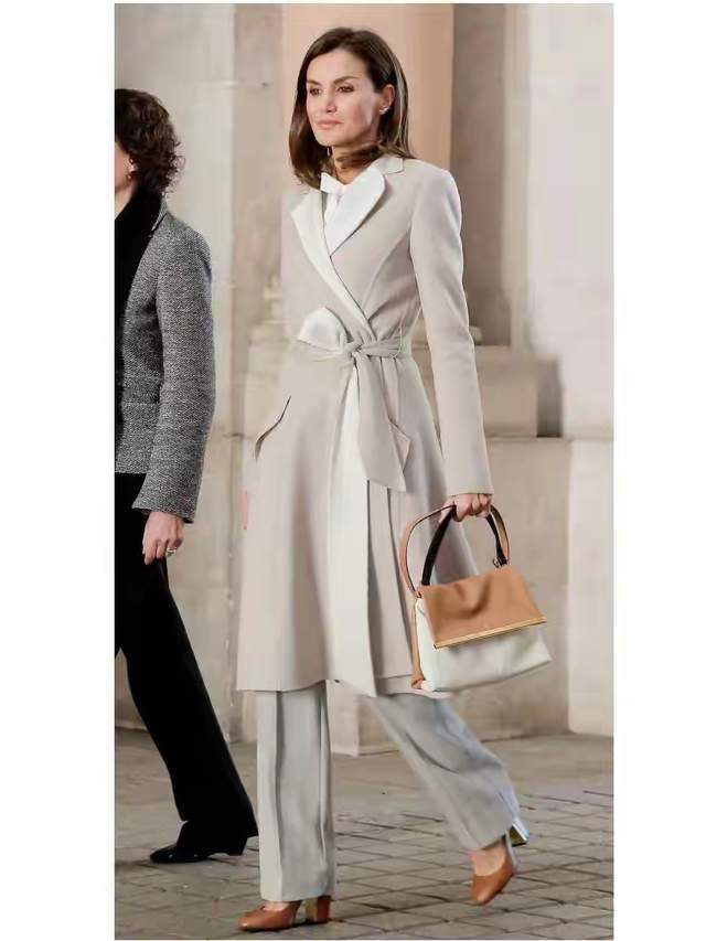 降温后才发现,大衣外套只要穿对了,真的很提升气质,普通女性穿大衣很容易摆脱路人感,更不要说像“西班牙王后”一样的气质女性,“莱蒂齐亚”将大衣的优雅仪态拿捏得恰到好处。