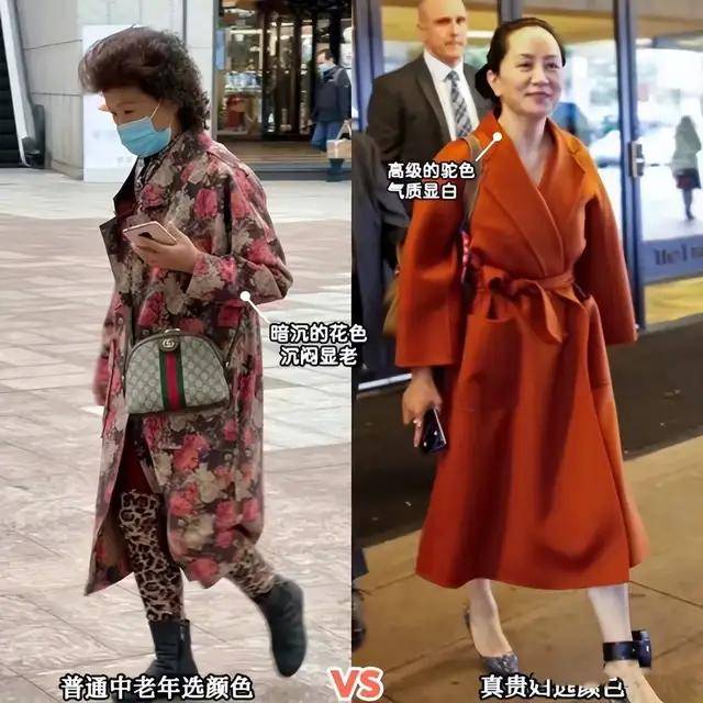 真正的贵妇穿大衣的时候都会选择纯色系,像“孟晚舟”就选择了一件高级的驼色大衣外套来搭配上亮片色的前扣高跟单鞋,显得整个人超有气质,同时让肤色显白。