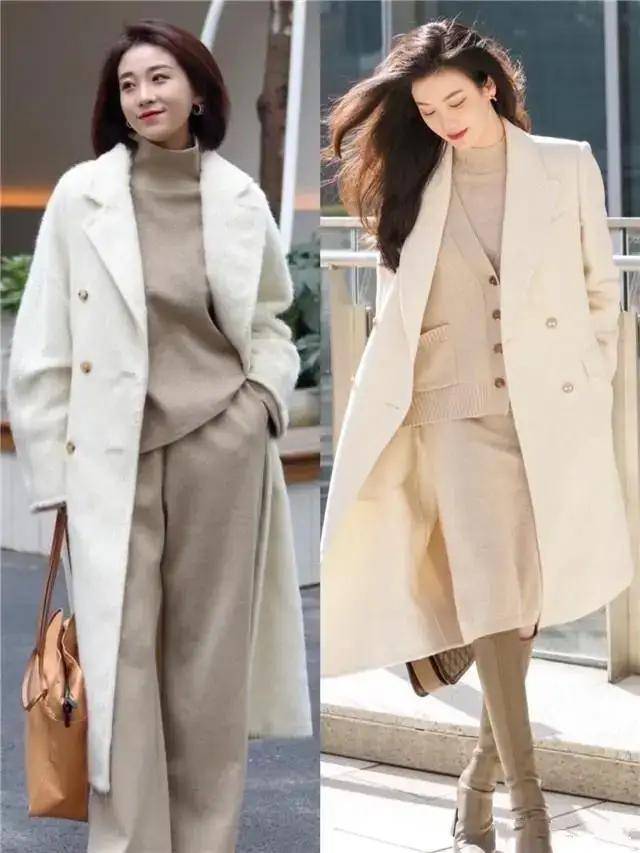 咱们普通素人日常穿搭想要更fashion,可以借鉴上面这位时尚博主一样,用白色大衣外套,再见,燕麦色的针织开衫和同色系的半高领针织打底衫,加上一条直筒半身裙,脚上直接选择长筒靴来组合,穿的穿衣造型很有女神范儿。