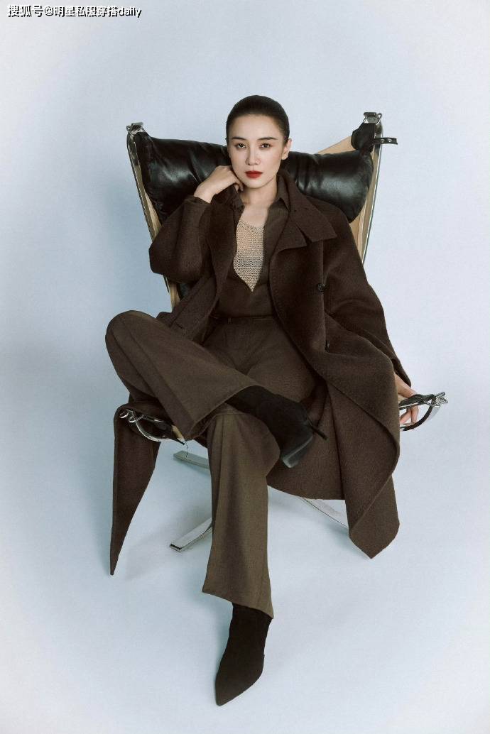 棕色作为美拉德色系,是秋冬时尚达人的宠儿!宋佳选择的这款棕色毛呢长款大衣,自带温柔飒爽感!她搭配了同色系的西装裤和麂皮绒高跟短靴!