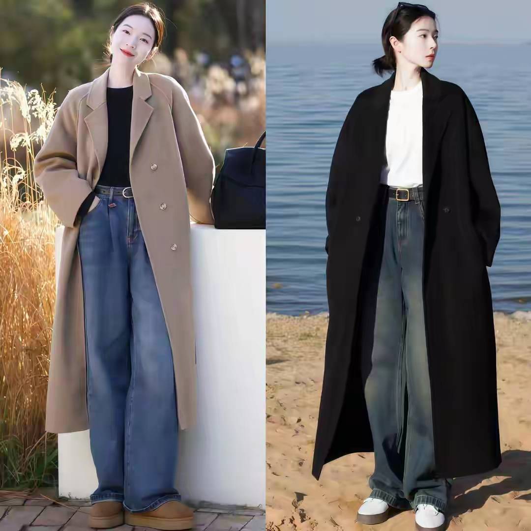 当然少不了的,还有大衣搭配牛仔裤,大衣穿在身上就能让人又帅又美,再用一条比较有垂坠感的牛仔直筒长裤来组合,就能使得穿搭者慵懒随性。