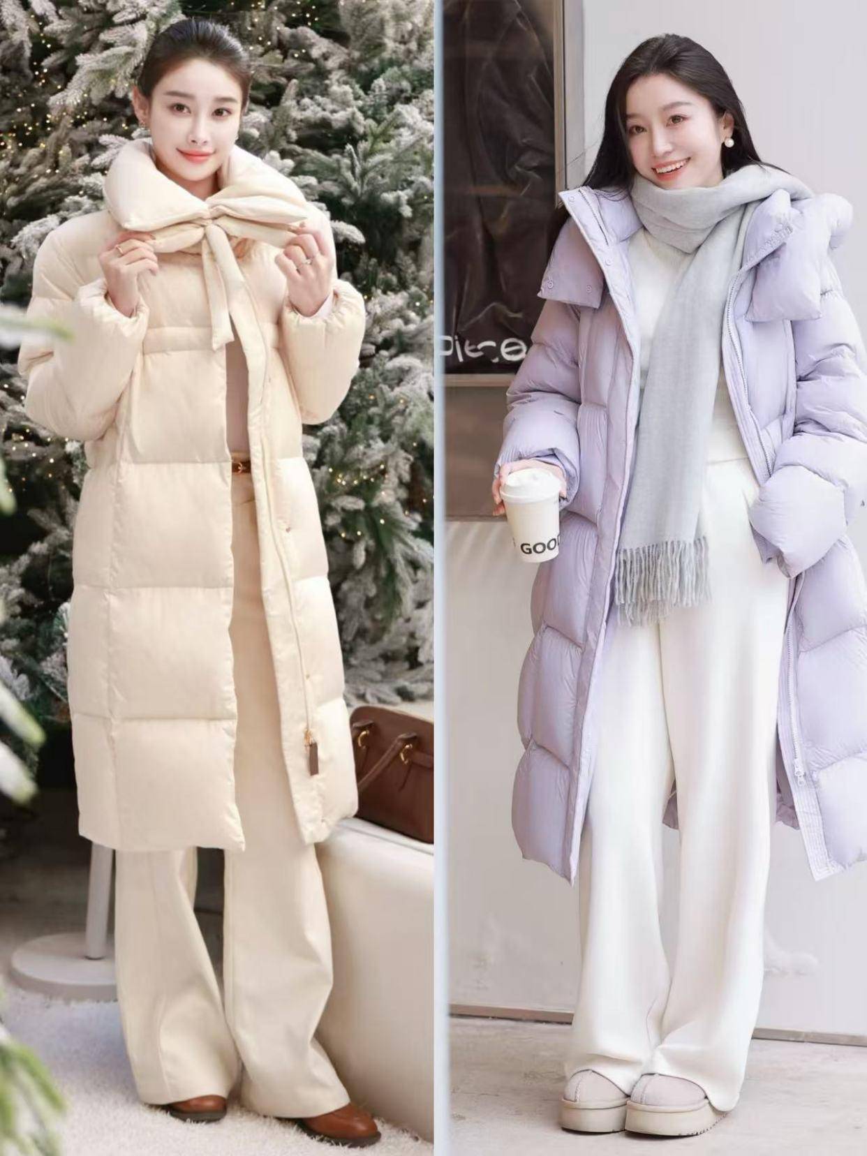 在这寒冷的冬天,我们要风度同样一定也要把控好温度,我上面图片中的达人穿搭就很不错,用一件浅紫色的长款羽绒服内搭白色的针织毛衣,加上一条白色的阔腿裤,脚上穿了一双雪地靴,这样的搭配不光很精致时髦,而且保暖舒适。