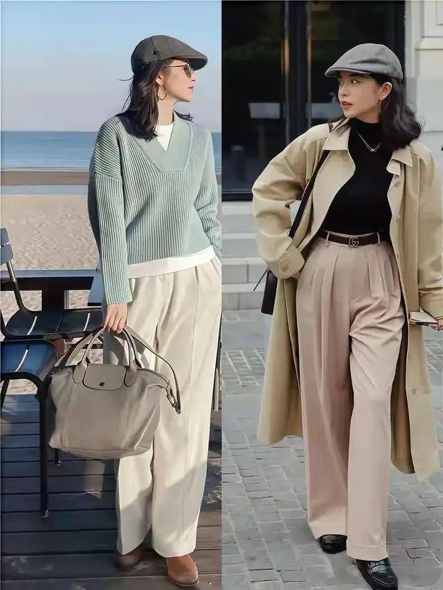 大降温之后,阔腿裤并没有跌落神坛啊,更受欢迎,因为可以内搭一件保暖的打底裤,就不会被冷风冻到,也不会显得臃肿。