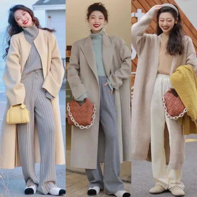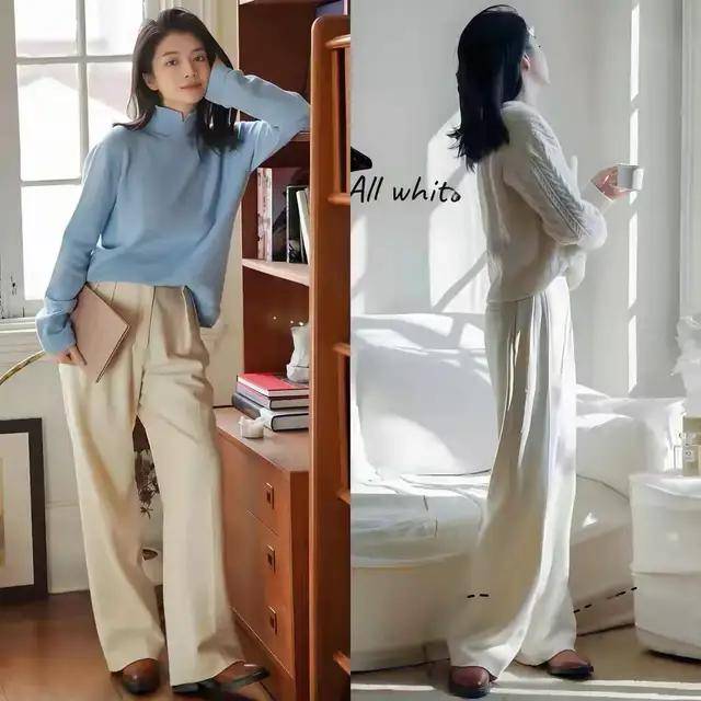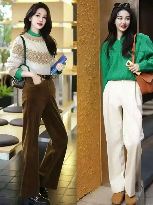 我们说完了裤子和鞋子的搭配技巧,再来看一下上衣,上衣也很关键,在这寒冷的冬天,推荐你可以选择一件毛衣搭配阔腿裤,这样会更保暖。