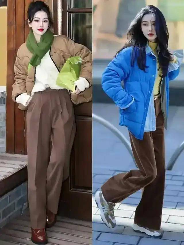 当然,也可以选择一款棕红色的西装裤,搭配上一件外套,脚穿一双棕色的短靴,这样的经典色调组合,使得你在寒冷的冬天轻松打破沉闷感,更有朝气蓬勃的视觉效果。