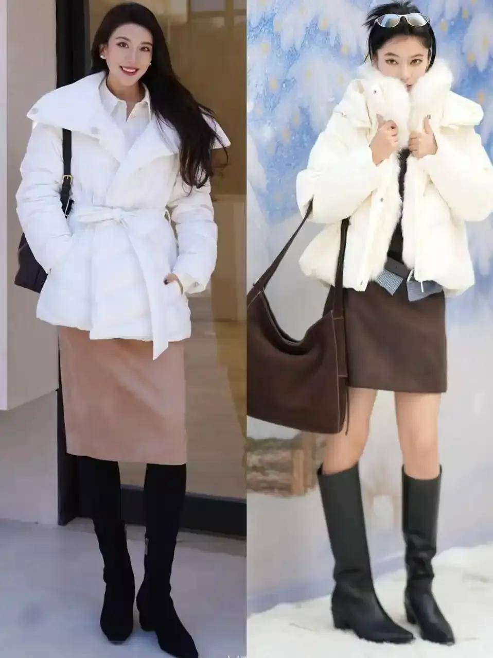 刚才我们看了董洁的羽绒服穿搭,是用短款羽绒服来搭配上短裙,这样的搭配比较适合出门就有专车接送,去到公司或者是去的场合就有空调地暖。