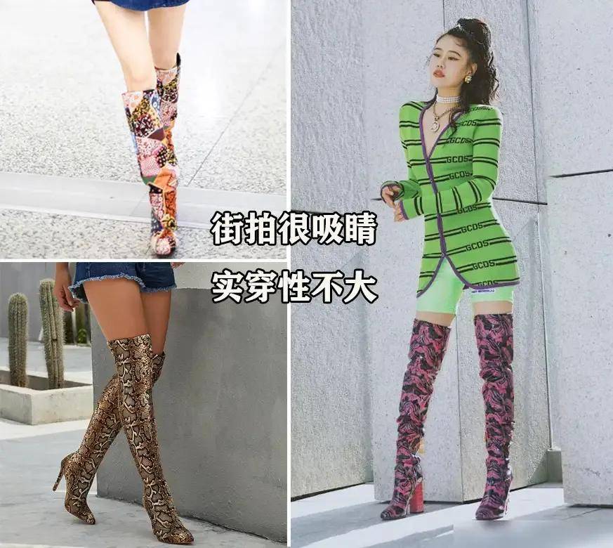 当我们看到比较花哨个性的长筒靴,确实很容易被吸引住,这种靴子穿在脚上实用性不是那么大,只是街拍的时候会更吸睛。我们普通大众日常生活中,尽量不要选择这种比较夸张设计的印花长筒靴,穿在脚上容易显土显廉价。