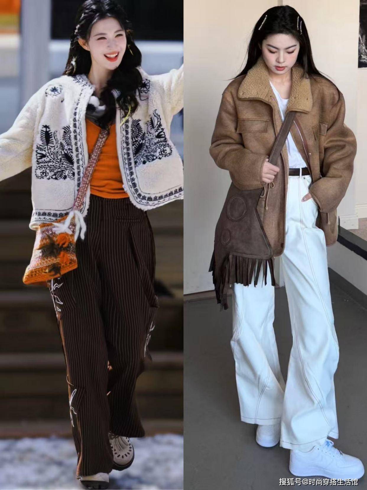 <方式二>羊羔毛+直筒阔腿裤