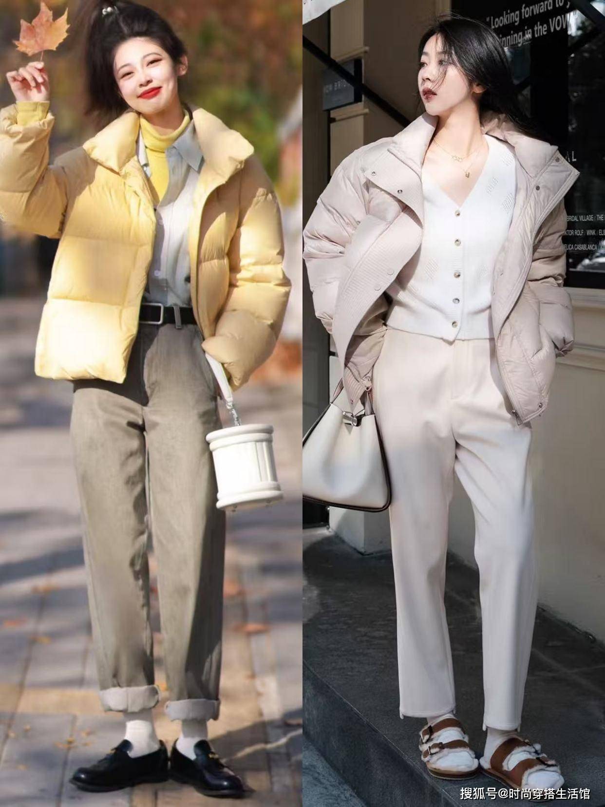 对于冬天来说最常见的长度就是短羽绒服,选择臂部以下的长度,这样也不用担心会把整个人都包裹住。此外我们还要选择合适的色彩,比如像是米白色、浅蓝色、大地色、浅紫色、淡粉色等等,这些低饱和度色彩更具有收缩效果,穿在身上会更时髦和显白。