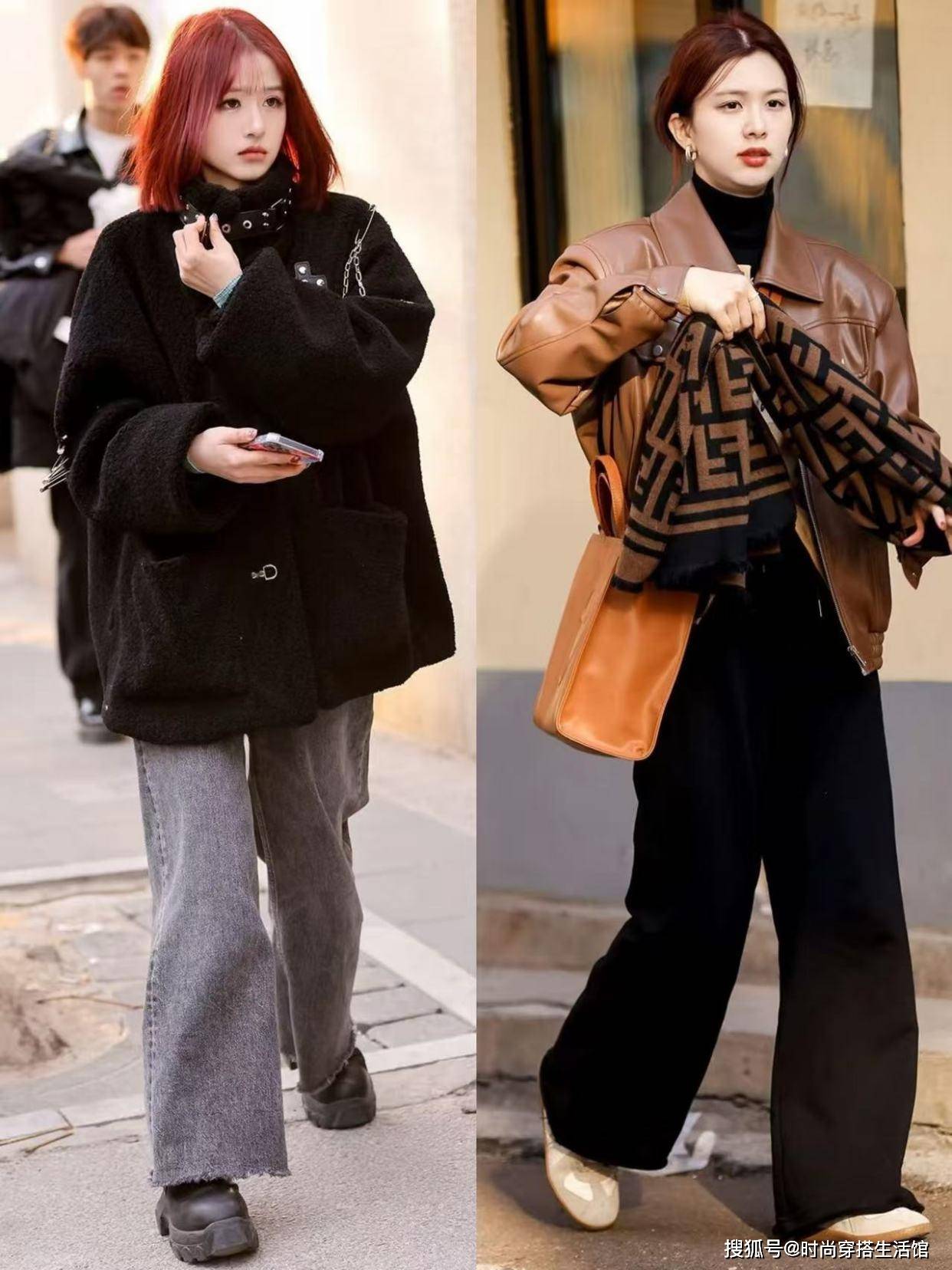 此外面对天寒地冻的季节我们还不能少了毛绒绒的外套,对于冬天最常见的就是羊羔外套,通常面料都是毛绒浓密而且修长,所以穿在身上很容易出现“炸毛”的现象,所以我们选择羊羔毛的时候要尽量避免选择长绒毛,尽量挑选短绒毛,其次尽量挑选圆领或者是V领的羊羔毛外套,这样搭配阔腿裤有效地避免了夸张的视觉效果。
