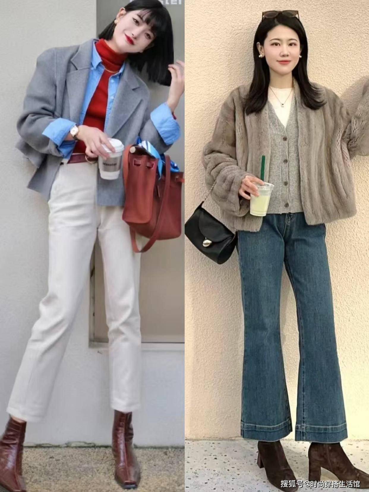 其次天寒地冻的季节我们选择短款的外套会更加的时髦和显高,最常见的短款长度是在腰部以下一点点的位置,这样才能更好的遮住我们臂部的位置,下身搭配高腰阔腿裤轻松就可以遮肉显腿长,此外我们选择合适的长度也不用担心会有压迫感,视觉上看起来显高显腿长,对于小个子来说也能轻松驾驭。