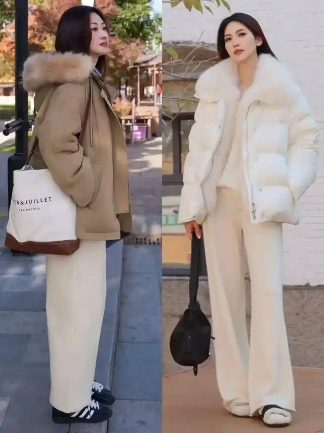 第二章节,绒羽服搭配阔腿裤的日常穿法解析