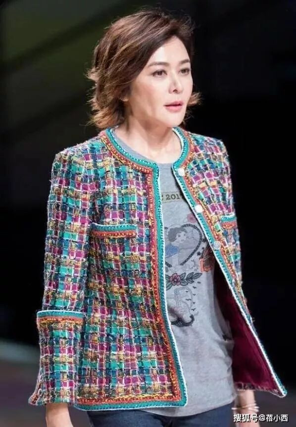 当关之琳身着一身彩色粗花呢外套走上T 台时,全场的目光瞬间被她牢牢吸引,不同于机场造型的松弛随性,这次她以知性优雅的姿态诠释了成熟女性的多元魅力,用一件复古又华丽的外套,打破了大众对 “中年穿搭” 的所有刻板印象。
