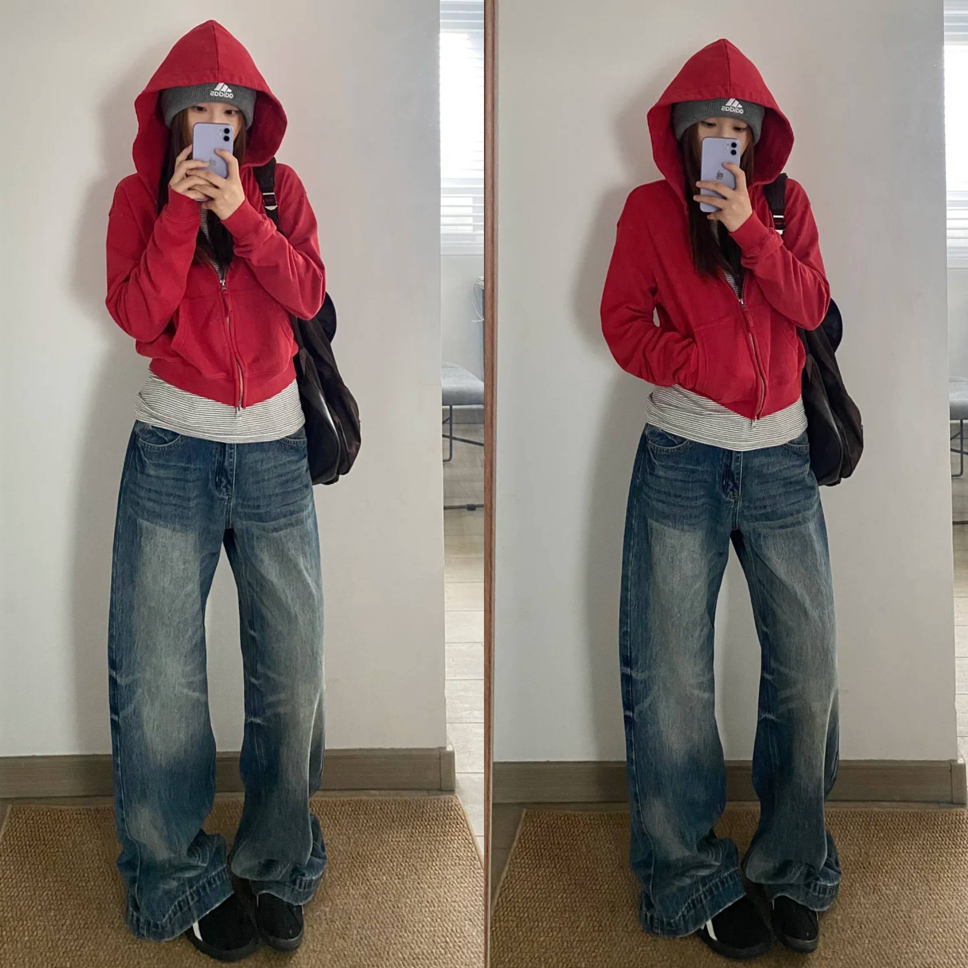 虽说开衫卫衣属于外套类,但是却非常的减龄,可搭配性也很强,选择短款修身版型,可以叠穿长款打底衫或者T恤,下半身衔接牛仔阔腿裤,打造休闲又随性的减龄感穿搭。