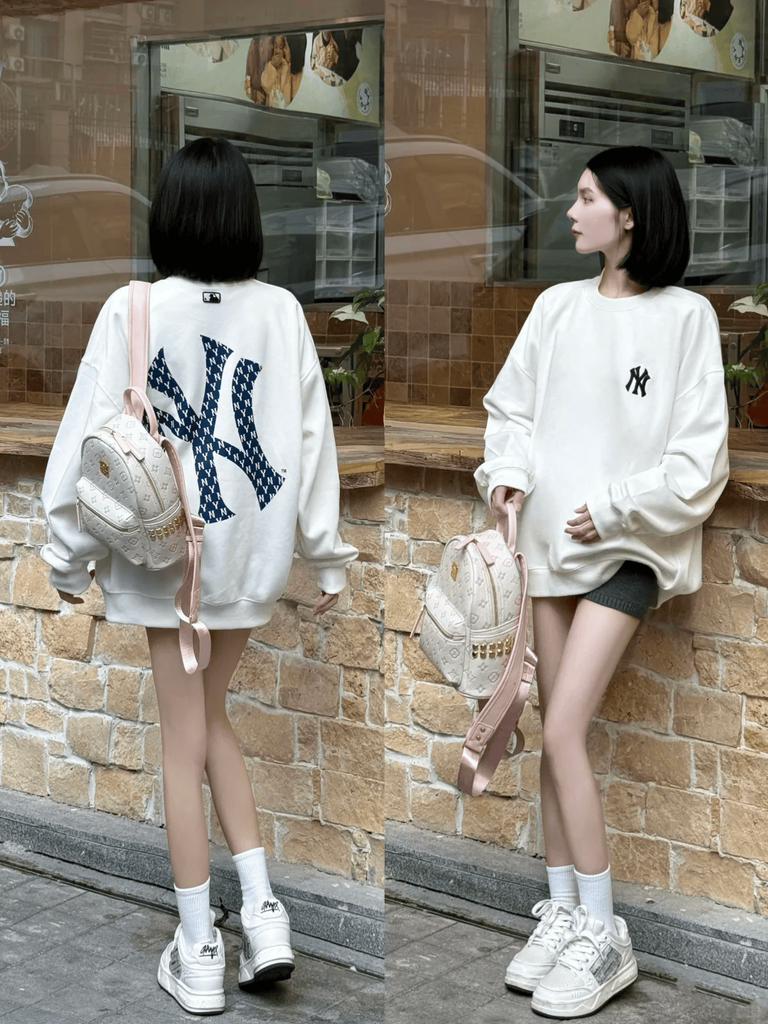 最后就是下衣失踪了,卫衣+短裤/短裙,短袜+运动鞋,轻松打造大长腿穿搭。选择白色系,更适合春天,如果担心太过单调,可以选择这种大印花的款式,更显时髦个性哦!