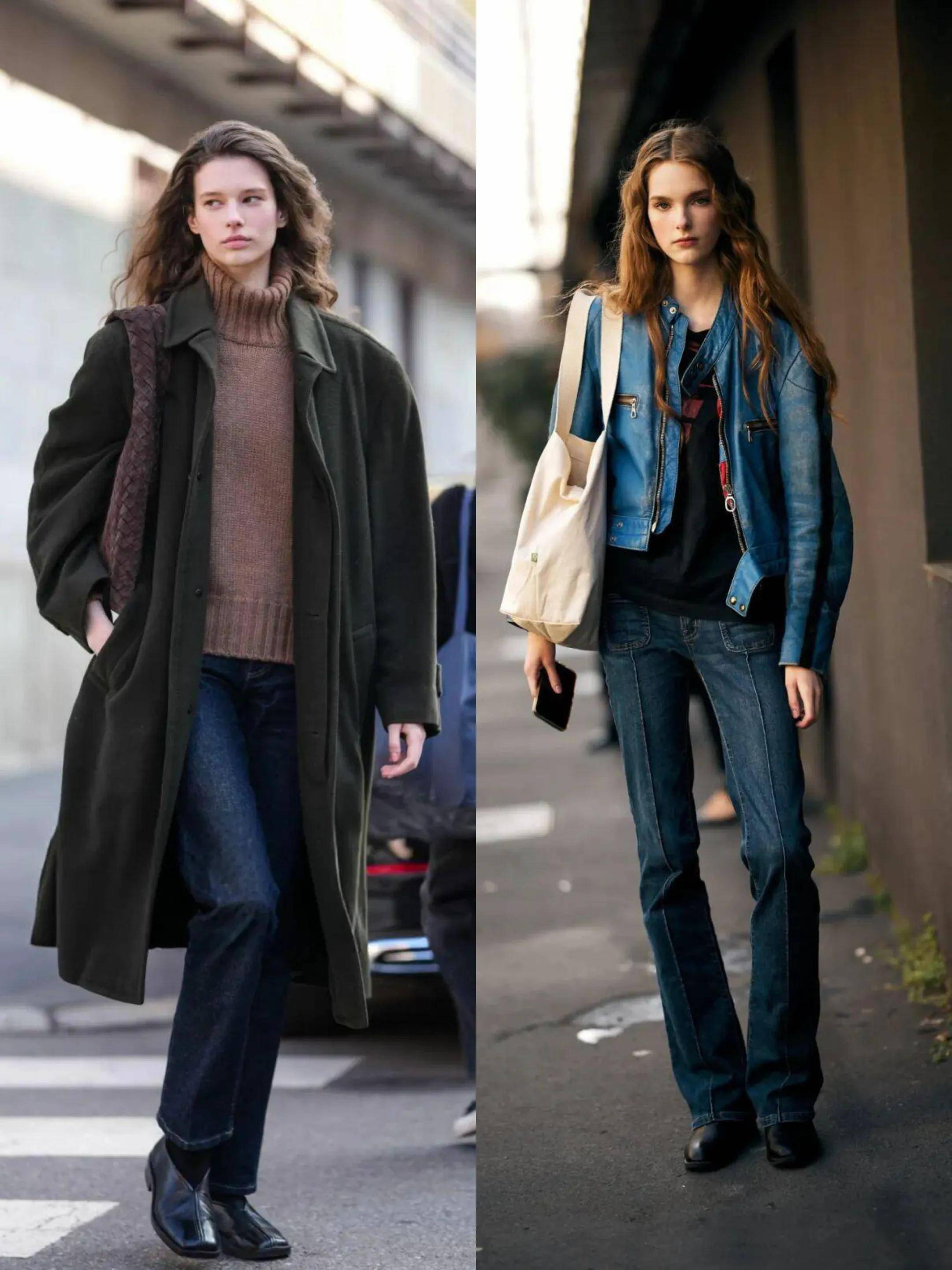 身高不同,气质不同,选择的穿衣风格有很大的差异。高个子女生身材偏瘦,可以选择一条牛仔低裆裤,配上一件夹克外套和白色 T 恤,就有一种慵懒随性的效果。