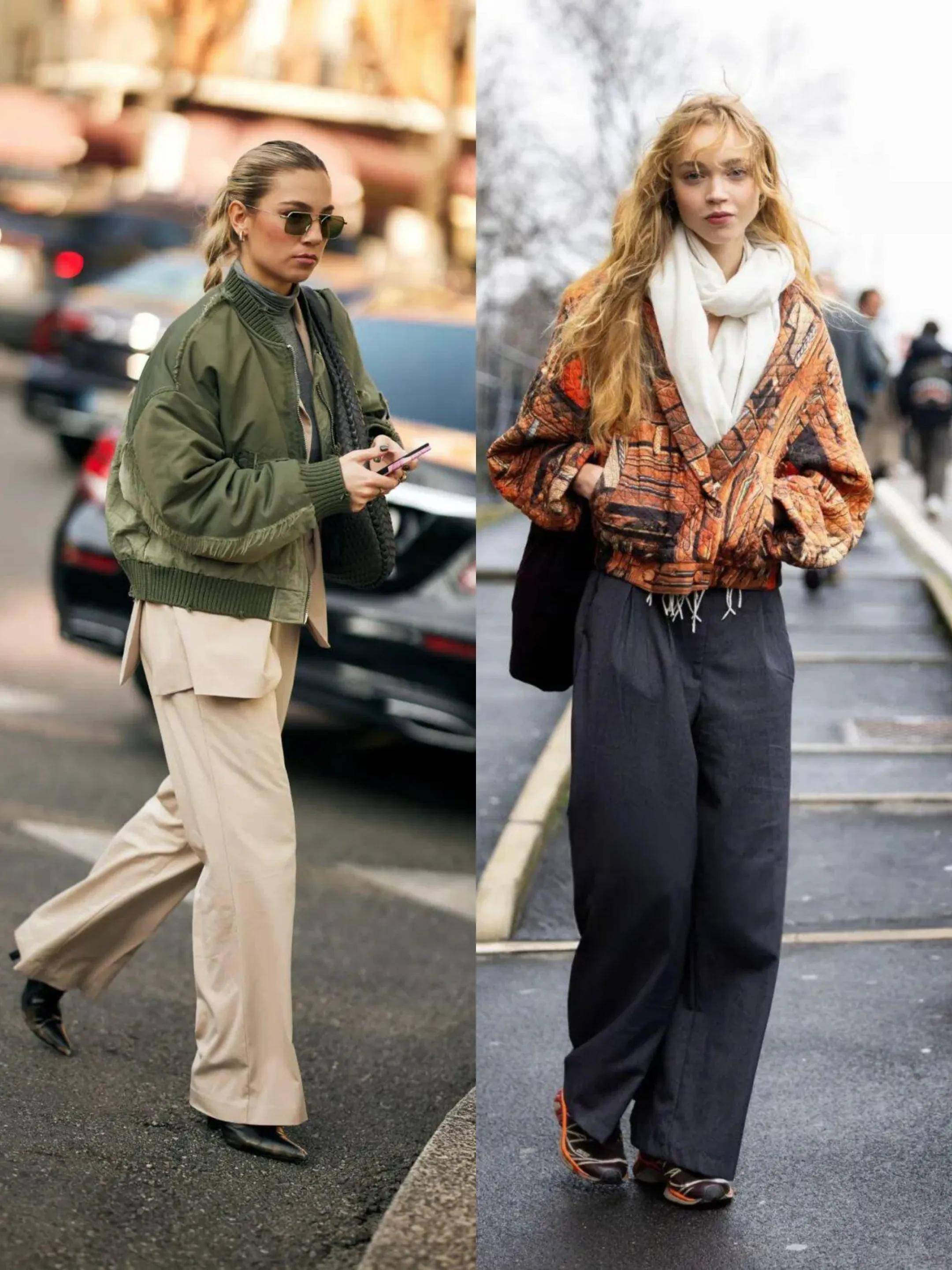 一定要注意,不管你穿的是西装裤还是牛仔裤,穿松不穿紧,选择微宽松直筒裤、阔腿裤、烟管裤穿在身上会更遮肉,尽量别选紧身裤来穿搭。
