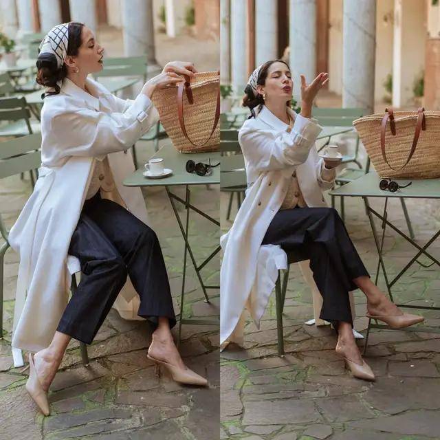 若是想好好地展现自己的身形与身姿,在这春天自带万般风情,不如选一件白色风衣配一条黑色紧身裤,脚踩高跟凉鞋,利落勾勒曲线。