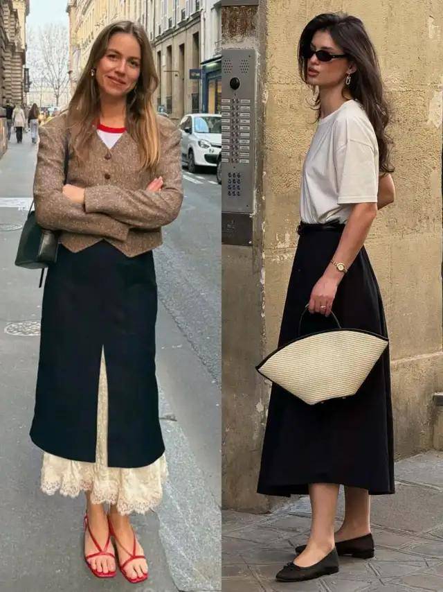 若是想要整体穿搭更别致时髦,和别人与众不同,那么我们一定要注重细节搭配。比如说在配色上,我们可以用黑色 T 恤配上红色半裙,瞬间整个人朝气蓬勃。