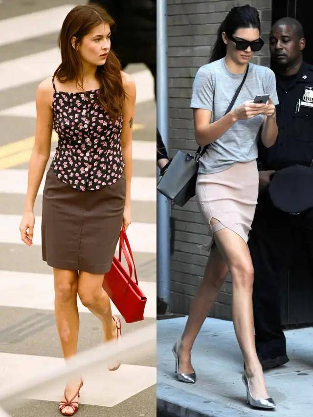 Tips④:开叉半裙 VS 皮质直筒裙