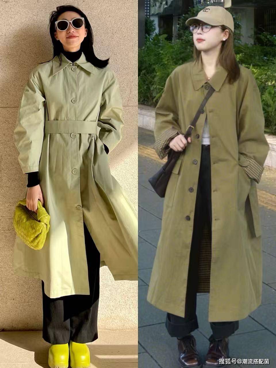 草木绿的色调穿起来会显得肤色白皙有气色。而且绿色象征蓬勃发展的爱情,春季穿上绿色风衣,营造出都市丽人的优雅与潇洒。